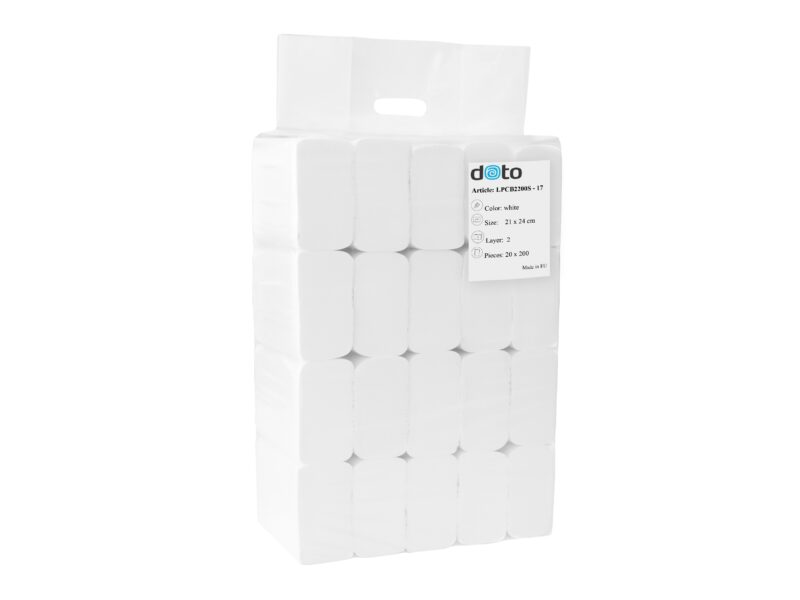 Doto Z-Fold Käsipyyhepaperi, 2x valkoinen, 200 arkkia /pkt, 20 pkt/ltk